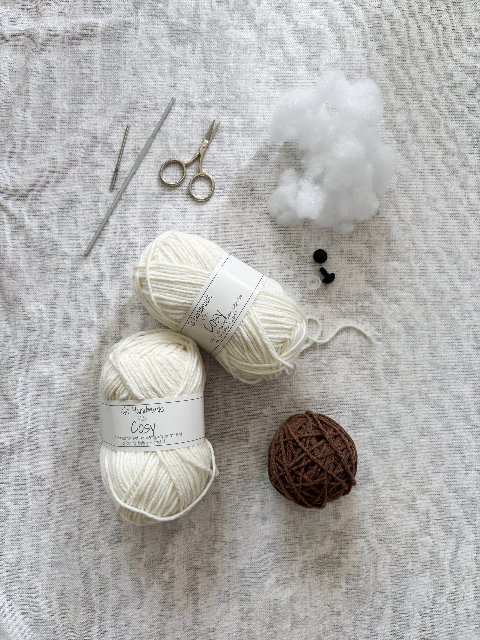 - Brunt garn (35 g)