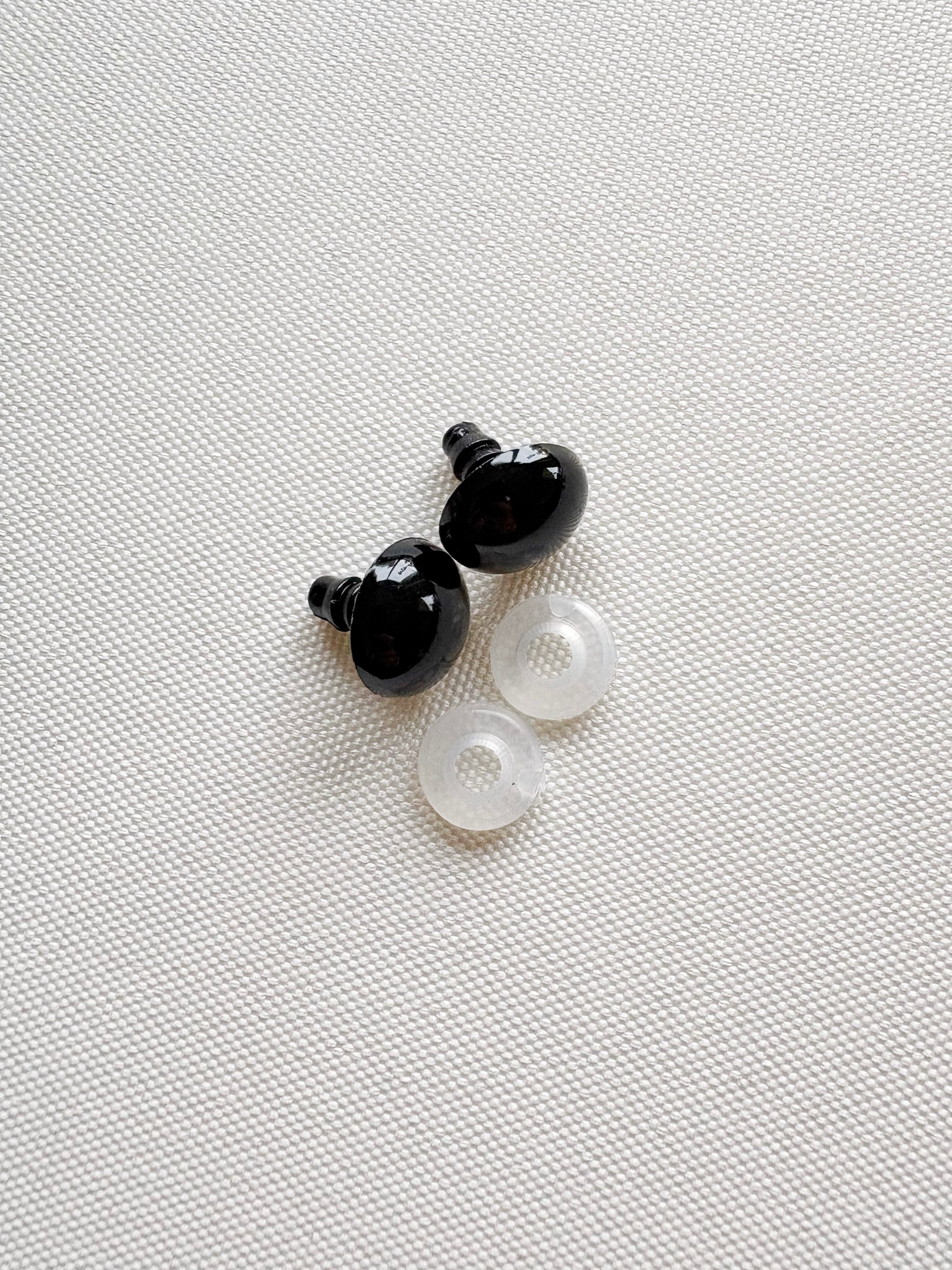 Säkerhetsögon med låsring till gosedjur och dockor. Ögonen behöver inte sys fast utan fästs enkelt med den medföljande låsringen.